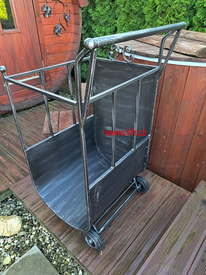 Kovaný koš na dřevo kolečko 4, ručně kovaný koš na dřevo, vyrobený z masivního materiálu, díky kterému má pevnou konstrukci, výbornou stabilitu a velikou nosnost. Dobrá manipulace je zajištěna kolečky s ložisky, s kterými i menší schody nejsou překážkou. Všechny rozměry koše lze přizpůsobit.