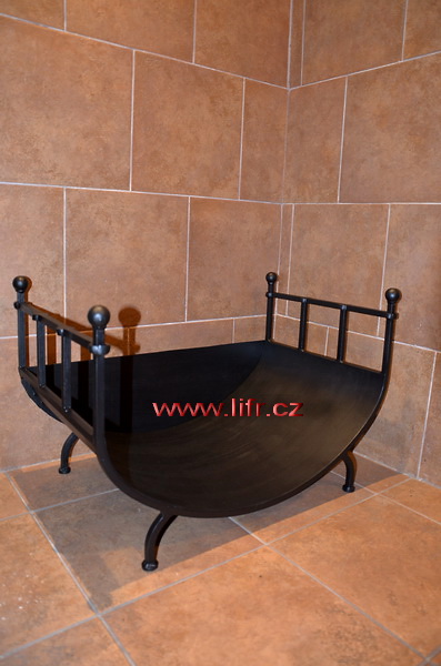 Koš na dřevo probíjená tyč, masívní materiál, pevná konstrukce, drsný nátěr, pěkná dekorace ke krbu nebo krbovým kamnům. Ručně vyrobený koš, každý koš je originál, vždy se líší, rozměrem a zpracováním. Délka, šířka, hloubka, podle Vašich požadavků.