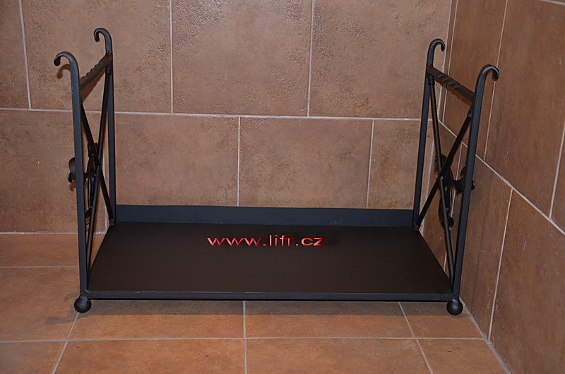 Kovaný koš na dřevo Drak 2, zadní čelo proti padání nečistot, masívní materiál, pevná konstrukce, drsný nátěr, pěkná dekorace ke krbu nebo krbovým kamnům. Ručně vyrobený koš, každý koš je originál, vždy se líší, rozměrem a zpracováním. Délka, šířka, hloubka, podle Vašich požadavků.
