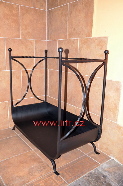 Kovaný koš na dřevo Jirka 2. Dvoje kolečka dřeva k naplnění, masívní materiál, pevná konstrukce, pěkná dekorace ke krbu nebo krbovým kamnům. Ručně vyrobený koš, každý koš je originál, vždy se líší, rozměrem a zpracováním. Délka, šířka, hloubka, podle Vašich požadavků.