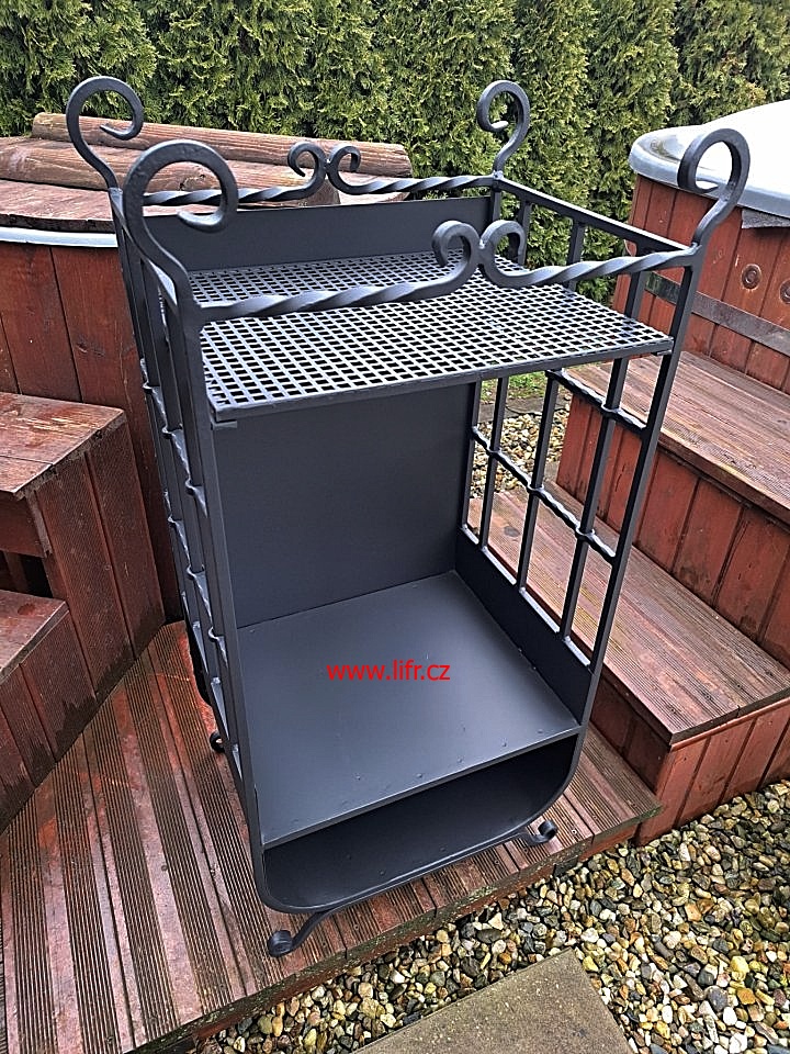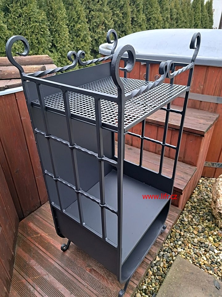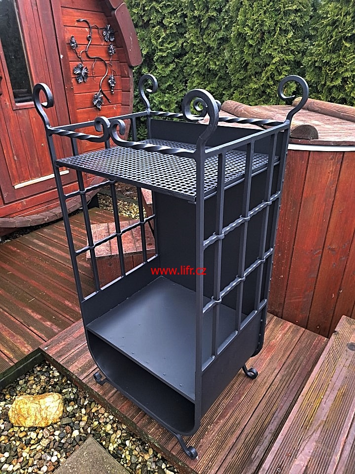 Kovaný koš na dřevo, třísky, papír, dřevo 7