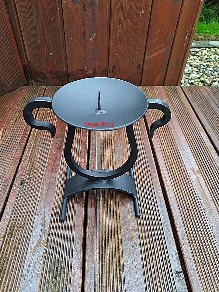 Kovaný svícen Lampa max 3, unikátní ruční práce pro Váš interiér Jedná se o ručně vyrobený stolní svícen z kovaného železa, který slouží jako osobitá a stylová dekorace. Tento svícen, nesoucí název "Lampa max", je příkladem tradičního kovářského řemesla, kde každý vyrobený kus je skutečným originál