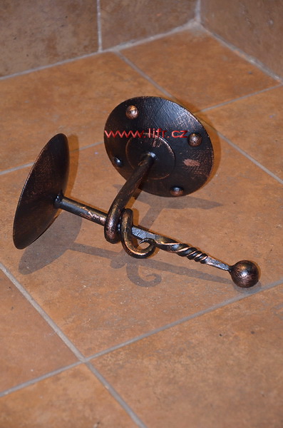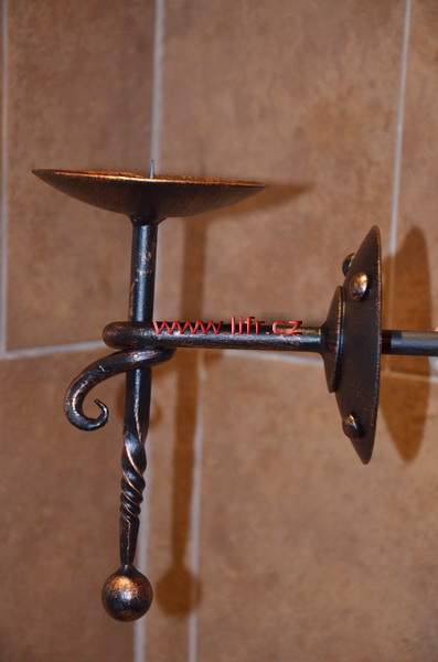 Kovaný svícen na zeď Viking, uchycený na zeď, který nepřekáží, použití obývací pokoj, kolem krbu, chodba, ložnice, na chatu, chalupu. Ručně vyrobený svícen, každý svícen je originál, vždy se líší, rozměrem a zpracováním.
